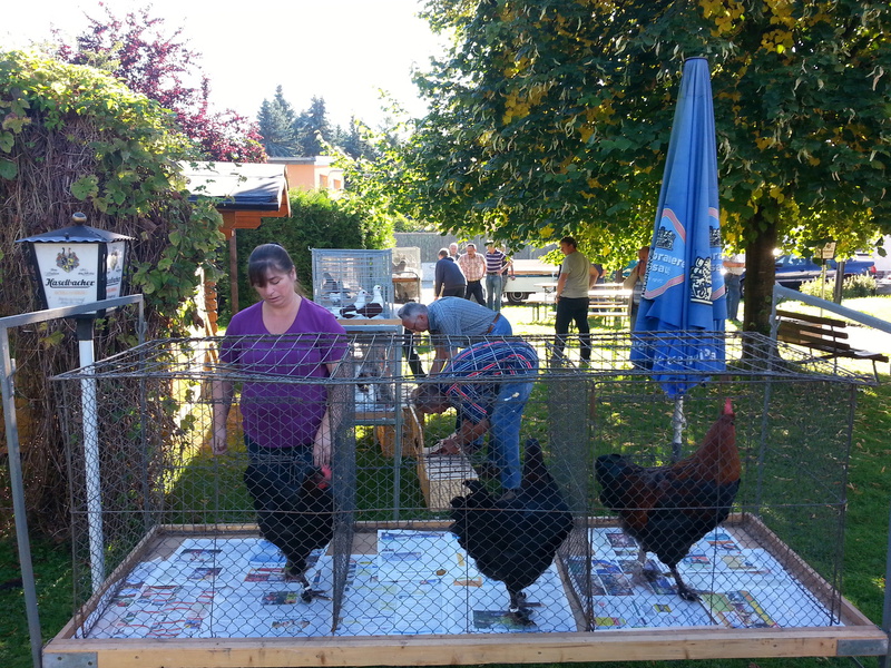 Das Wetter meinte es an diesem Samstagmorgen gut mit uns und pünktlich um 10.00 Uhr konnte die Tierbesprechung des KV Chemnitz, mit Preisrichter Rüdiger Lorenz beginnen. Insgesamt waren über 60 Hühner, Zwerghühner und Tauben zu beurteilen. Für das leibliche Wohl sorgten die Inhaber der Gaststätte "Drei Schwanen". Allen Beteiligten am Auf- und Abbau, sowie Rüdiger Lorenz ein herzliches Dankeschön!